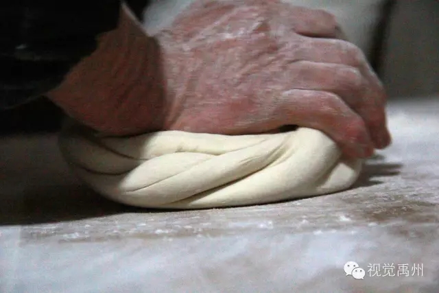 和面时把面粉放入盆里注入清水,用手指按一个方向充分搅和,再改用手掌反复揉按,将水和散面全部揉合在一起,待揉到“面光、盆光、手光”的和面最高境界后,就成了一个个这样的大面团。