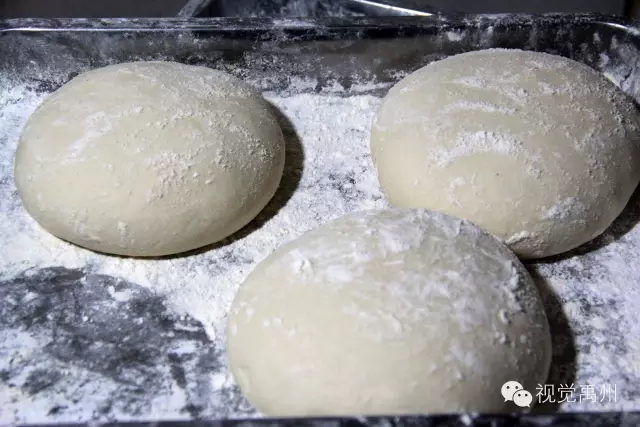 醒过之后在案板上撒些干面粉,俗称“薄面”。再将“醒好”的面团放到案板上用擀面杖将面团压扁。