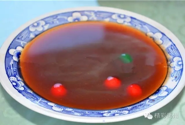 十三碗鸡蛋汤,寓意圆圆美美。但我们都叫这个汤——滚蛋汤,意思吃“丸”,“滚蛋”。哈哈,开玩笑,大家别当真。