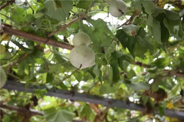 葫芦藤侧葫芦花,葫芦架下葫芦娃;葫芦扒村来安家,连叶成海美如画。
